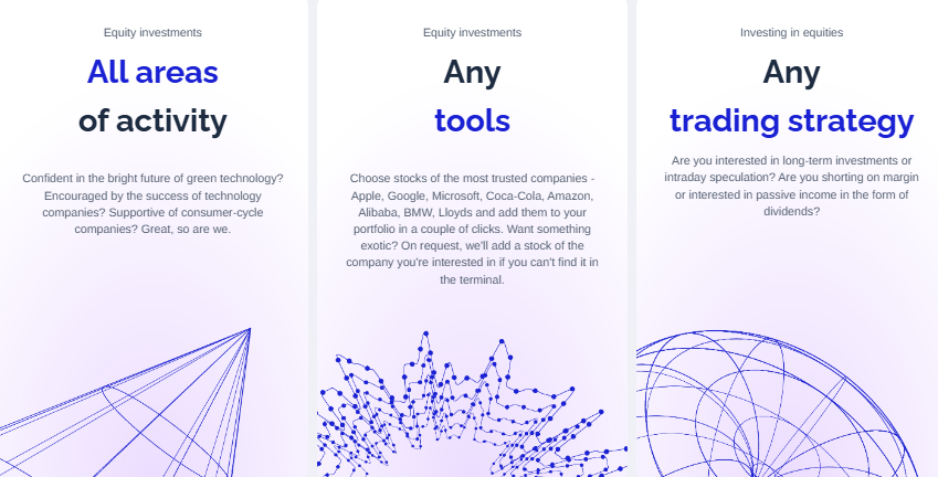 Платформа предоставляет доступ к широкому выбору финансовых инструментов: